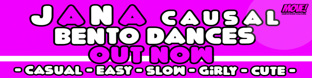 Hello girls, here is the new bento dance pack from MOVE! COLOGNE .... yAY. I'm always so amazed to see such realistic dances. In this pack "JANA Casual Bento" can see pretty movements that make you say that you are "caliente". Have seen pretty hip hip, a swaying buttocks. It's dances for casual and sensual. I am completely a fan of this pack. girls let you try by this pack I put you the link just below. It is available on marketplace and in shop. bigs kiss ♥